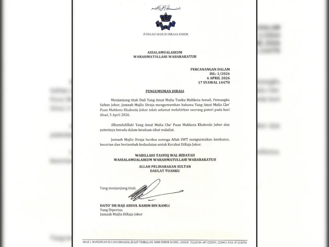 Pengumuman diraja itu disampaikan oleh Abdul Rahim Ramli, Yang Dipertua Jumaah Majlis Diraja Johor, dalam satu kenyataan hari ini.