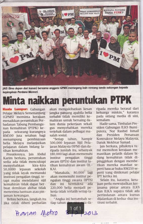 Berita penulis bersama GPMS memperjuangkan PTPK pada tahun 2013.
