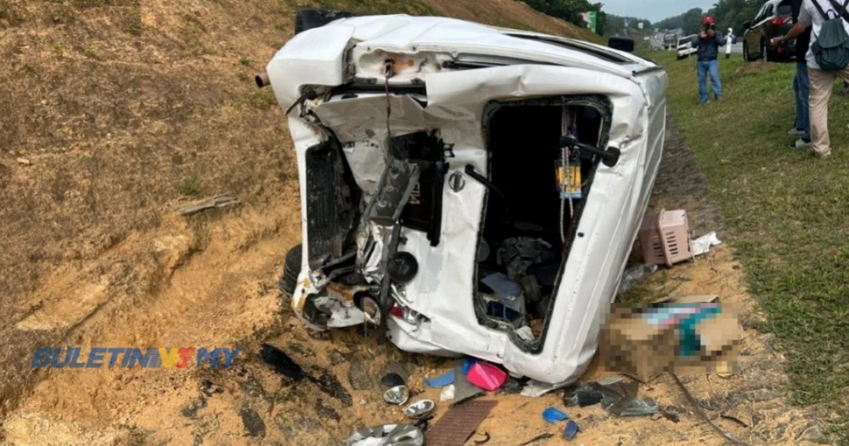 “Van itu dikatakan sedang berhenti di lorong kecemasan akibat masalah teknikal dan menunggu bantuan pihak lebuh raya. Kesan pelanggaran menyebabkan van bergerak ke hadapan sebelum terbalik ke dalam parit di sebelah kiri jalan.