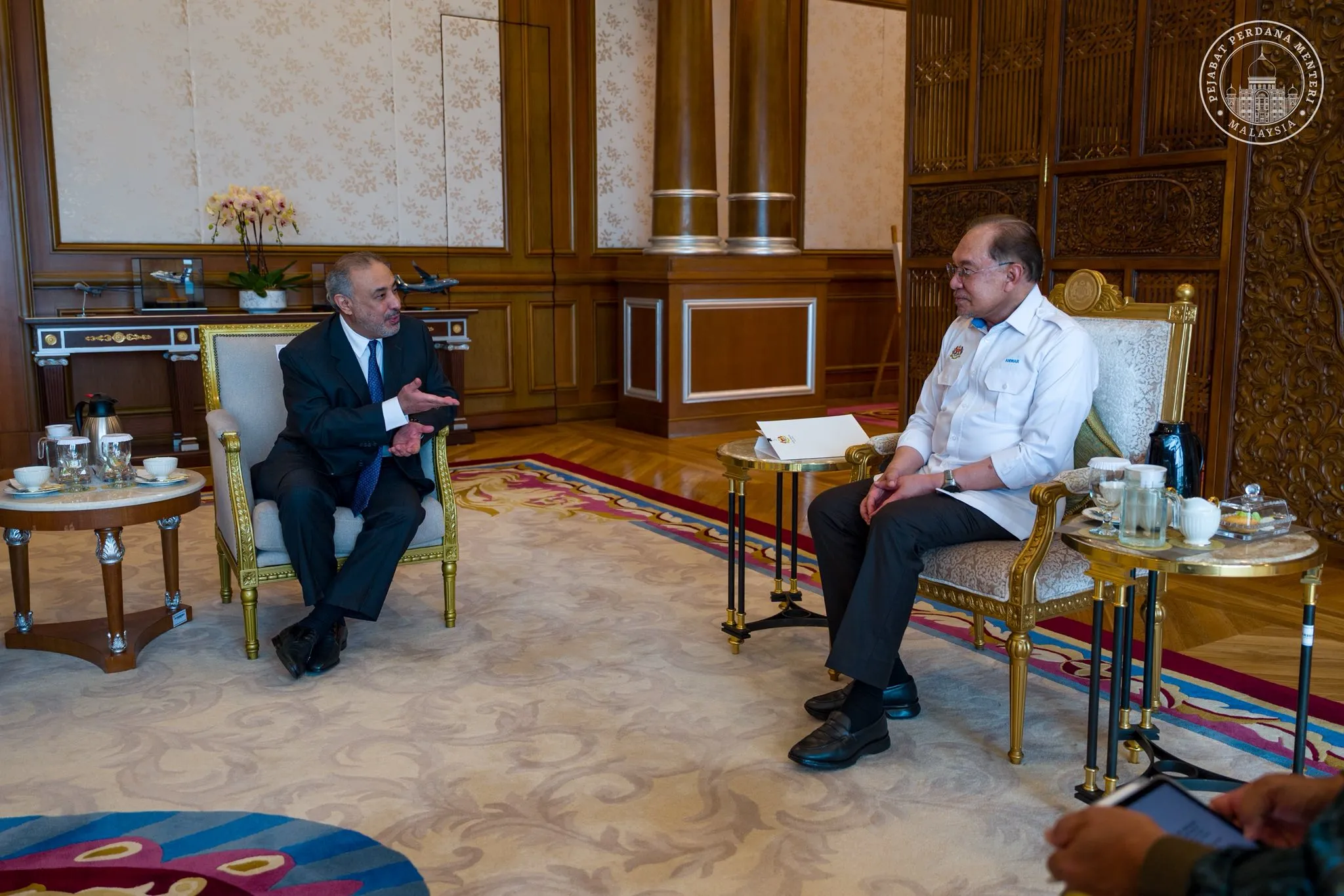 Perdana Menteri sebelum itu menerima kunjungan hormat Pengerusi National Gas Company SAOG Oman, Sh Abdulla Suleiman Hamed Al Harthy di pejabatnya bagi memperkukuh kerjasama strategik serta meneroka peluang pelaburan baharu yang mampu menjamin kestabilan bekalan tenaga negara.