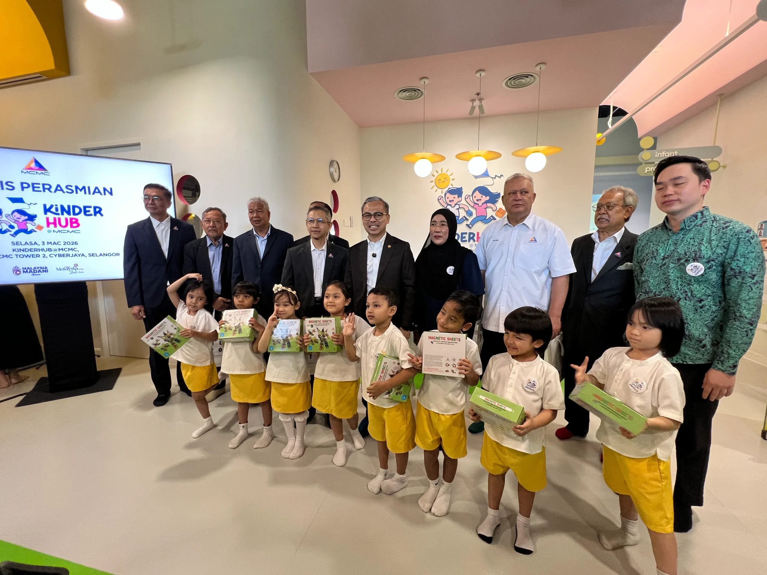 MENTERI Komunikasi, Datuk Fahmi Fadzil hari ini merasmikan Taman Asuhan Kanak-kanak (Taska) dan Taman Didikan Kanak-kanak (Tadika) KinderHub@MCMC, sebagai manifestasi komitmen berterusan Suruhanjaya Komunikasi dan Multimedia Malaysia (MCMC) dalam memperkukuh kesejahteraan warga kerja dan keluarga.