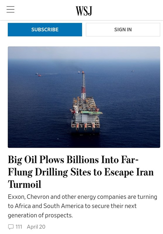 Menurut laporan Wall Street Journal, syarikat seperti ExxonMobil telah mengemukakan pelan pelaburan bernilai AS$24 bilion bagi pembangunan medan minyak laut dalam di Nigeria. Sementara itu, Chevron dilaporkan memperluas operasinya di Venezuela.