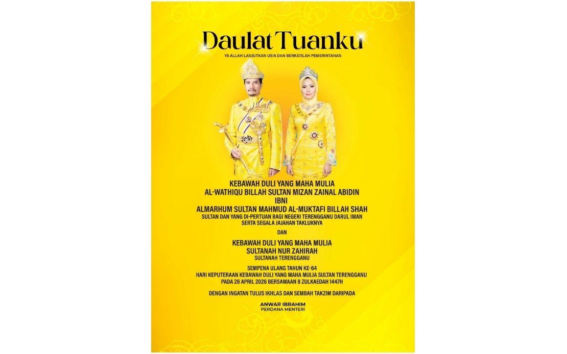 “Patik mendoakan ke hadrat Allah Subhanahu Wa Ta’ala semoga Tuanku Sultan dan Sultanah serta seluruh Kerabat Diraja sentiasa dilimpahi rahmat dan hidayah-Nya serta berada dalam keadaan sihat, sejahtera dan penuh kedaulatan. Dirgahayu Tuanku!,” kata Anwar.