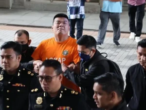 Kedua-dua mereka dibawa secara berasingan ke mahkamah, dalam keadaan bergari dan memakai pakaian lokap Suruhanjaya Pencegahan Rasuah Malaysia (SPRM) berwarna jingga.