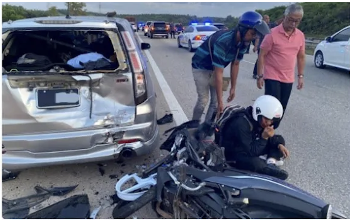 Semasa tiba di lokasi kejadian, baginda melihat kemalangan melibatkan sebuah motosikal dengan sebuah kereta.