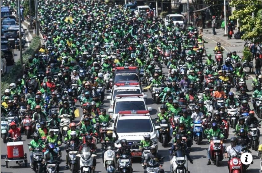 Salah seorang pemandu ojol, Bambang memberitahu Kompas.com, mereka berbuat demikian sebagai tanda bersedih  dan solidariti sesama pemandu ojol.
