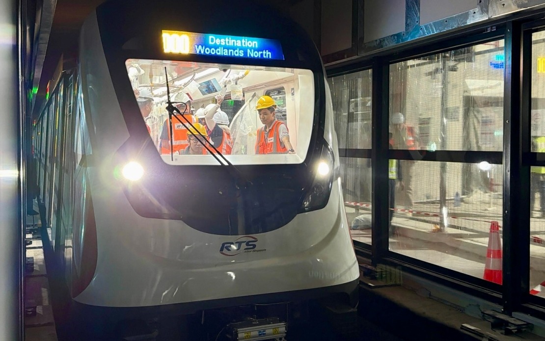 TREN pertama Sistem Transit Rapid (RTS) Link Johor Bahru-Singapura tiba di Stesen Woodlands North semalam bagi demonstrasi tren yang dijadualkan, menurut Penguasa Pengangkutan Darat (LTA).